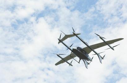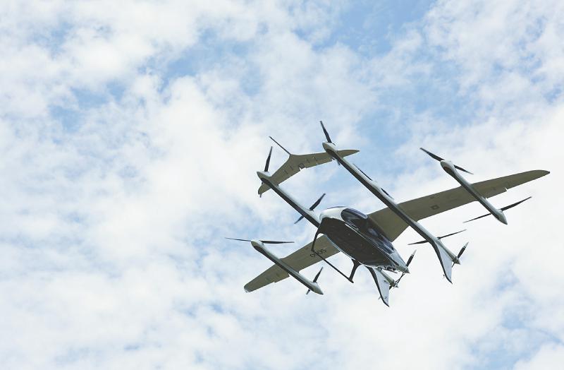这是在飞行测试基地进行飞行演示的V2000CG凯瑞鸥电动垂直起降航空器(7月22日摄)。