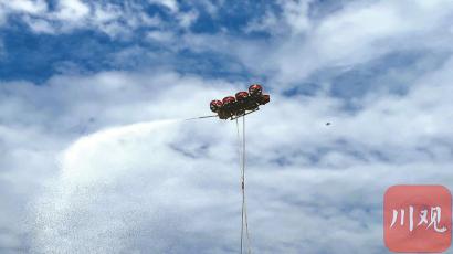 “敖钦”在演示高空救火。 自贡观察 李佳玲 摄