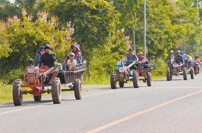 7月25日,在柬埔寨奥多棉吉省,边境居民驾车撤离。7月25日,当地居民聚集在泰国乌汶府一处避难所。本栏文图均据新华社