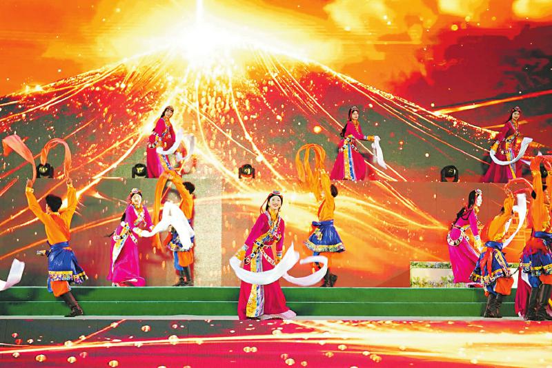 演出中,纪录片《藏民团》先导片首次发布,带领观众重温那段激昂的红色岁月。“花馍馍”“酥油花”“鲜水河”“亚拉雪山”等无人机视觉意象贯穿全场,让这场展演不仅成为视听盛宴,更成为一部立体呈现的“道孚发展图卷”。