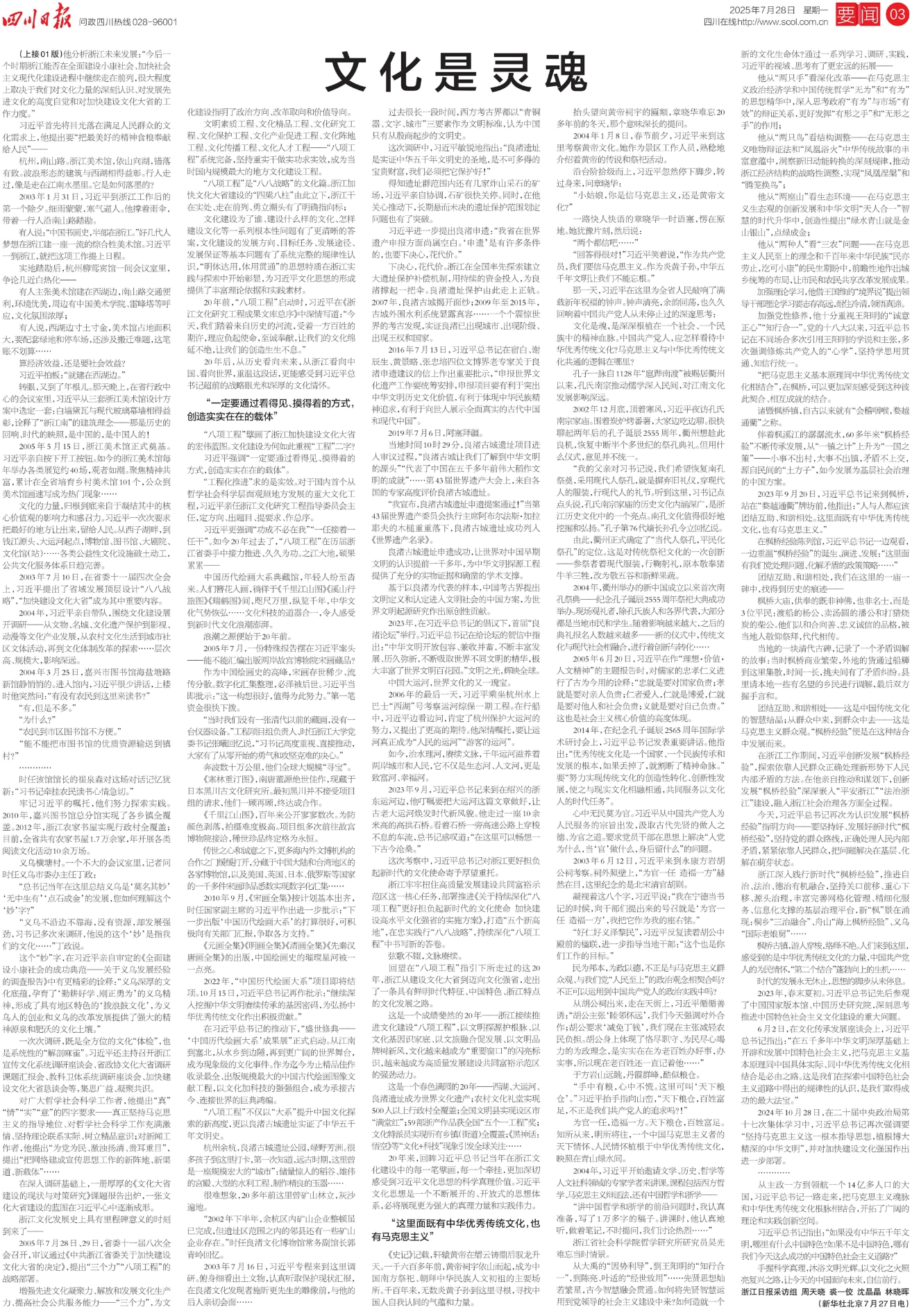 20年前,“八项工程”启动时,习近平在《浙江文化研究工程成果文库总序》中深情写道:“今天,我们踏着来自历史的河流,受着一方百姓的期许,理应负起使命,至诚奉献,让我们的文化绵延不绝,让我们的创造生生不息。”