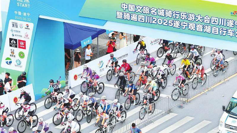 六月二十二日,中国文旅名城骑行乐游大会四川遂宁站暨骑遍四川二○二五遂宁观音湖自行车公开赛鸣枪开赛。遂宁观察刘益静摄