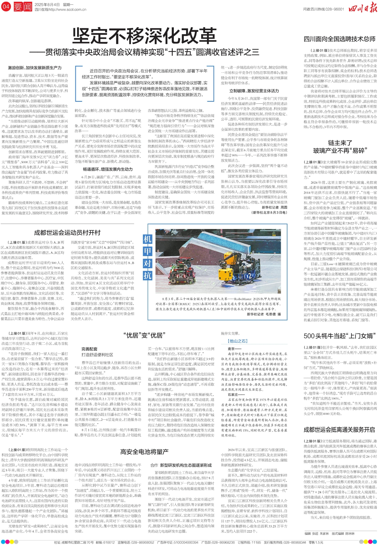 民营企业座谈会提出“要坚决破除依法平等使用生产要素、公平参与市场竞争的各种障碍”等改革举措;国有企业改革深化提升行动走深走实,截至6月底地方重点任务平均完成率超过90%……今年,一系列改革举措不断释放发展活力。