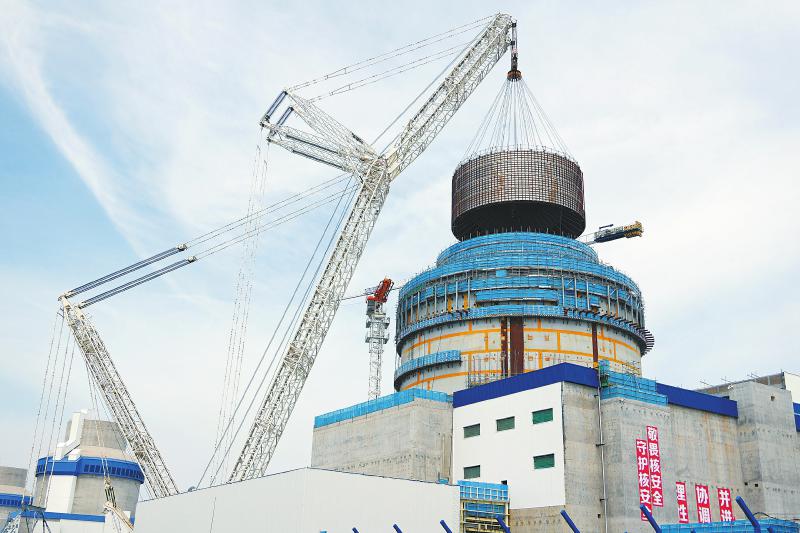 8月4日,位于山东的国家电投海阳核电站3号机组核岛CB20模块顺利吊装就位,标志着该机组大型模块全部吊装完成,开始进入设备安装调试阶段。 建设中的海阳核电3、4号机组是国家“十四五”规划重点项目,计划2027年全面投运。 图为海阳核电3号机组核岛CB20模块吊装现场。 新华社发(唐克 摄)