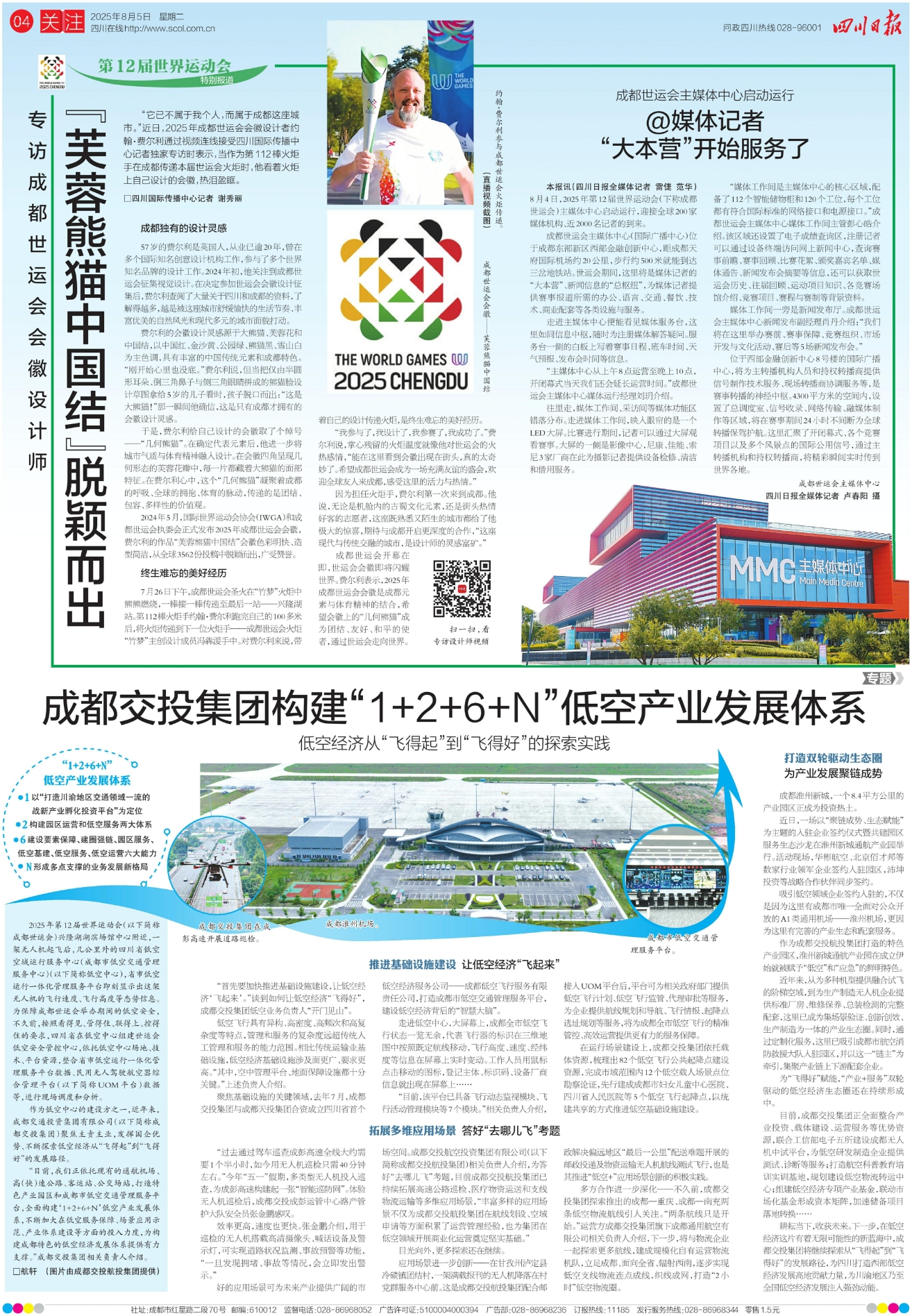 “目前,我们正依托现有的通航机场、高(快)速公路、客运站、公交场站,打造特色产业园区和成都市低空交通管理服务平台,全面构建‘1+2+6+N’低空产业发展体系,不断加大在低空服务保障、场景应用示范、产业体系建设等方面的投入力度,为构建成都特色的低空经济发展体系提供有力支撑。”成都交投集团相关负责人介绍。