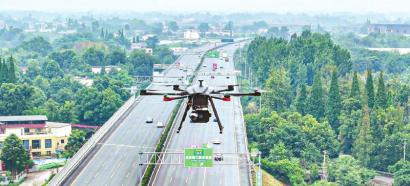 成都交投集团在成彭高速开展道路巡检。成都淮州机场。成都市低空交通管理服务平台。