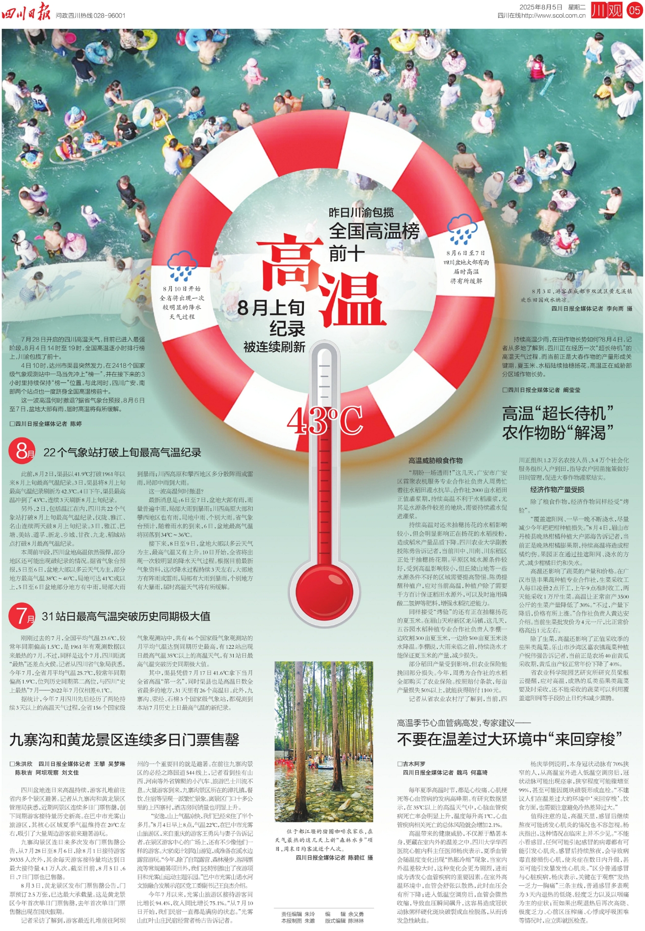 四川盆地连日来高温持续,游客扎堆前往省内多个景区避暑。记者从九寨沟和黄龙景区管理局获悉,近期两景区连续多日门票售罄,创下同期游客接待量历史新高。在巴中市光雾山旅游区,其核心区域夏季气温维持在20℃左右,吸引了大量周边游客前来避暑游玩。