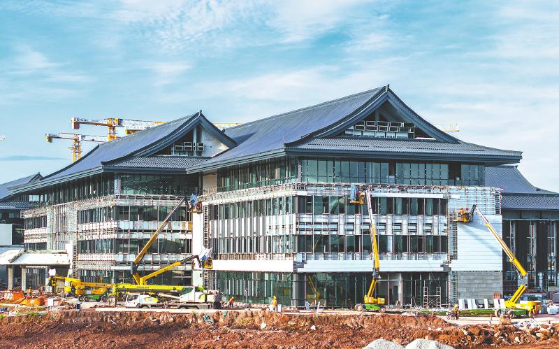 7月30日,广安理工学院(暂定名)建设现场,施工人员在进行建筑外墙装修。该项目占地面积约1200亩,总投资约35亿元,建成投用后将成为广安市第一所本科高校,预计9月竣工验收,2026年面向全国招生。张国盛 摄