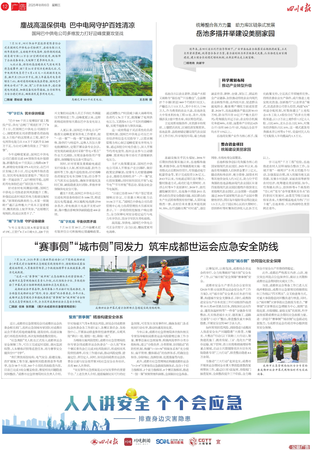 立足地形地貌条件、水资源丰裕现状、土壤肥沃状况、区域经济发展差异,岳池县委、县政府锚定建设现代农业园区工作目标,科学规划布局,着力构建涵盖育苗、耕种、仓储、深加工、销运的全产业链条,加快推动传统农业向现代农业转型升级,在科技兴农、促进群众就地择业、粮食增产增收方面成效显著。2024年,岳池县粮食产量达到50.03万吨,跻身四川省10亿斤产粮大县行列;苟角镇良田过万亩,农业综合机械化率超80%,水稻、油菜单产分别达625公斤/亩和185公斤/亩,均高出全县平均水平11%以上。