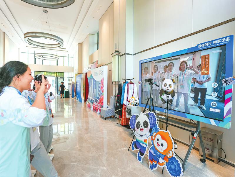 体验区运营负责人安晓宁介绍,这个集科技、文化与语言学习于一体的创新空间,由教育部中外语言交流合作中心与成都大学联合设计开发,旨在让来自世界各地的运动员在紧张赛事之余放松身心,沉浸式感受中国文化魅力。