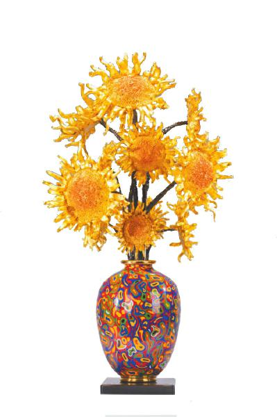 《稻可道,非常稻》,用流动的铜液做成金灿灿的稻田,将自然主义与写实技法完美结合。在朱炳仁看来,稻、粱、粟等蕴含了大道,“作为人口大国,粮食安全一定要掌握在我们自己手上。”《燃烧的向日葵》,以梵高《向日葵》为灵感,让这幅世界名画从平面走向立体,展现了律动而鲜活的生命力。为纪念大运河申遗成功而创作的《运河之光》,在光影交织中,昭示着华夏文明生生不息。