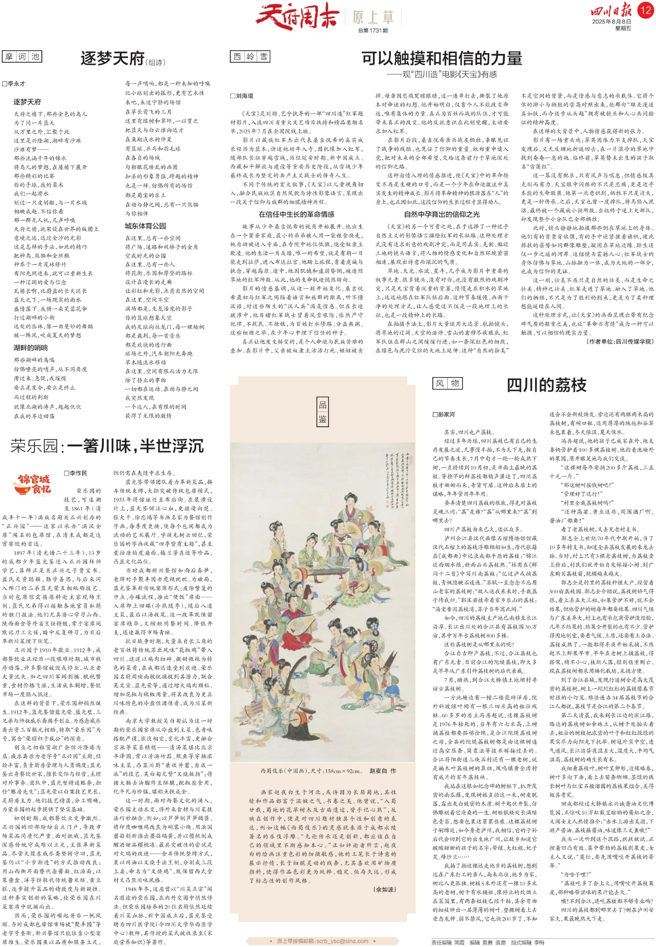 画家赵夜白生于河北,或许因为长居蜀地,其性情和作品都富于温婉之气、书卷之美。他曾说,“入蜀廿载,蜀地的花草树木及古庙遗迹,皆手记心熟”,反映在创作中,便是对四川题材独具个性和创意的表达,例如这幅《西蜀伎乐》的灵感就来源于成都永陵著名的乐伎浮雕。“无论传承还是创新,都应该在自己的领域里不断感知本心。”正如评论者所言,赵夜白的绘画注重色彩的细微敏感,他的工笔长于诗意的展示抒情,长于细腻灵动的线条,尤其喜欢用矿物质颜料,使得作品色彩更为纯粹、稳定、保存久远,形成了标志性的创作风格。
