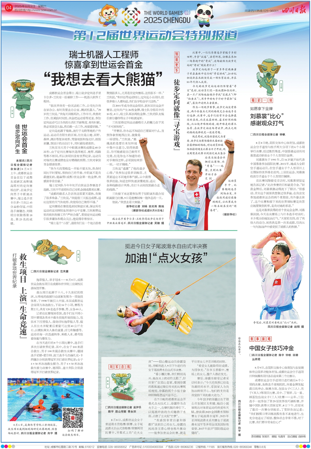 8月8日,成都世运会女子索道滑水资格赛/预赛、女子尾波滑水自由式资格赛/预赛两项比赛中,开幕式上的“点火女孩”——眉山籍运动员徐露登场,并顺利进入9日下午进行的女子尾波滑水自由式半决赛。