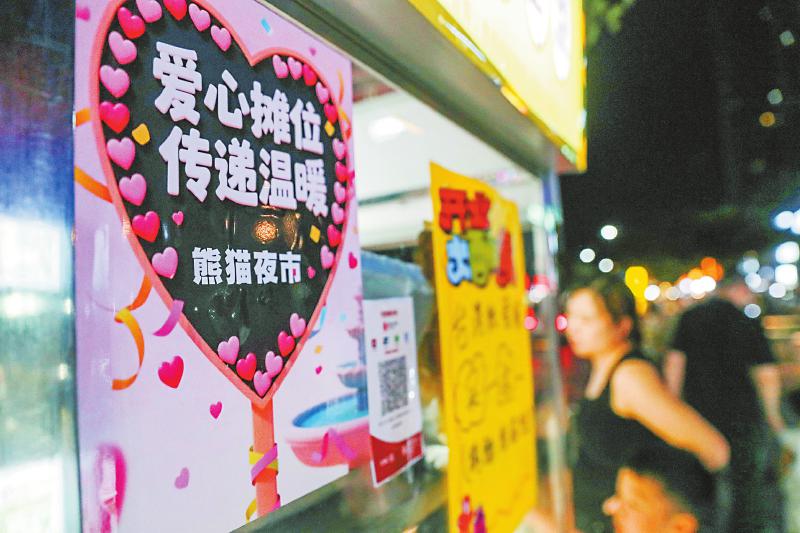 “我们今年还统一加入了熊猫元素和雅安各区县的美食彩灯,举行免费送‘熊猫’等活动,为爱心摊位‘引流’。”李云峰说。