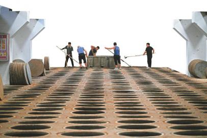 深1.2米、直径0.8米,缸口与地面齐平,位于山西省吕梁市汾阳市杏花村镇的汾杏酒厂酿酒车间内的近两万口地缸,像方阵一样排列。7月30日,汾杏酒厂的车间内一片忙碌景象。工人们用棉布蘸着水,仔细地擦拭每一口地缸。在杏花村,维持地缸清洁是头等大事。“这是花椒水。花椒的辛香不仅能驱散残留的异味,还能在致密的陶壁上形成一层天然的保护屏障。”山西新晋商酒庄集团有限责任公司副总经理李雄智说。