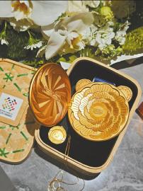 这一理念最终转化为独特的开合结构。奖牌设计如同一块精致的怀表,从侧面打开就可以看到“竹光”里的乾坤:成都市花芙蓉花图案位于中央,花心处是一枚双面金属徽章。徽章一面为本届世运会吉祥物之一川金丝猴“锦仔”,另一面则是太阳神鸟环绕成都世运会会徽。