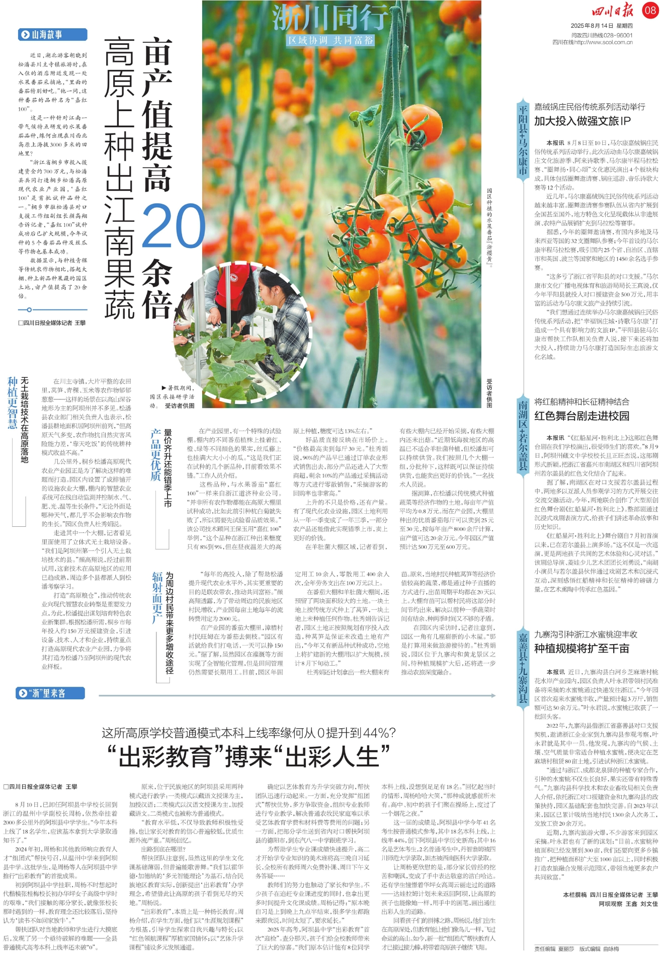 “通过与浙江、成都龙泉驿的种植专家合作,引种的水蜜桃不仅生长良好,果实还带有特殊香气。”九寨沟县科学技术和农业畜牧局相关负责人介绍,依托浙江对口援建资金和九寨沟县的政策扶持,园区基础配套也加快完善。自2023年以来,园区已累计吸纳当地村民1300余人次务工,发放工资20余万元。