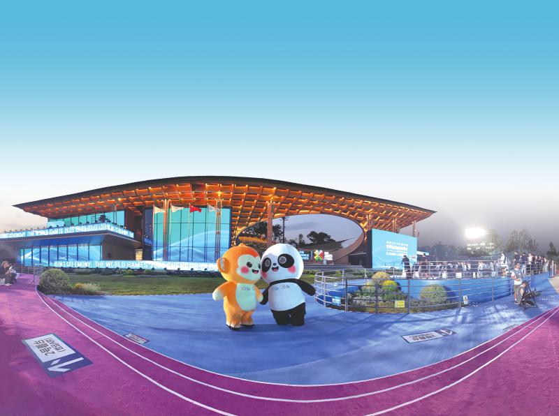 闭幕式场地依托成都世园会国际友谊馆既有场景,既充分利用现有城市空间,践行“节俭办赛”原则,又贴合“公园城市”的生态理念。生态绿色与花园锦绣同写诗意,多元共生与家园友爱共筑美好。