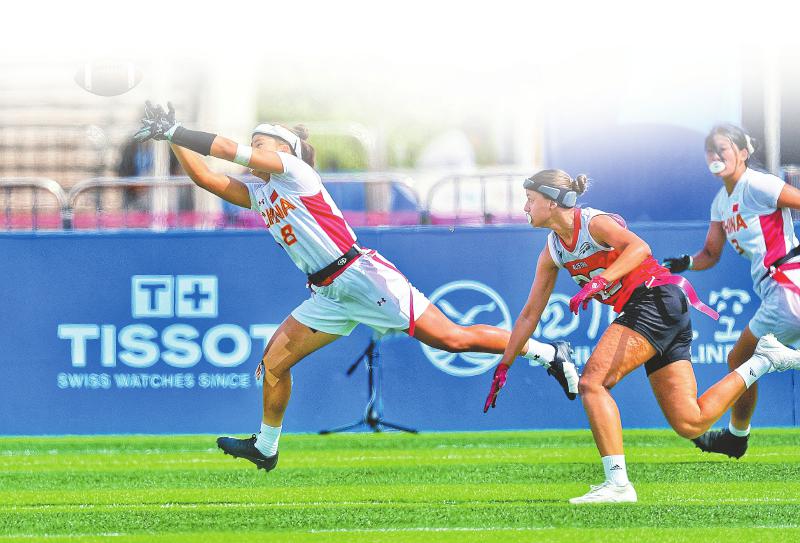 8月14日上午,成都世运会女子腰旗橄榄球项目在成都七中东部学校田径场开赛。这是中国女子腰旗橄榄球队的国际比赛首秀,迎战世界排名第四的奥地利队。最终,中国队虽以45∶47惜败,但表现惊艳。
