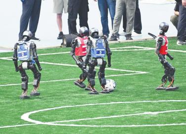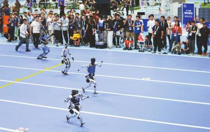 机器人在开幕式上展开足球对抗。新华社记者 张晨霖 摄