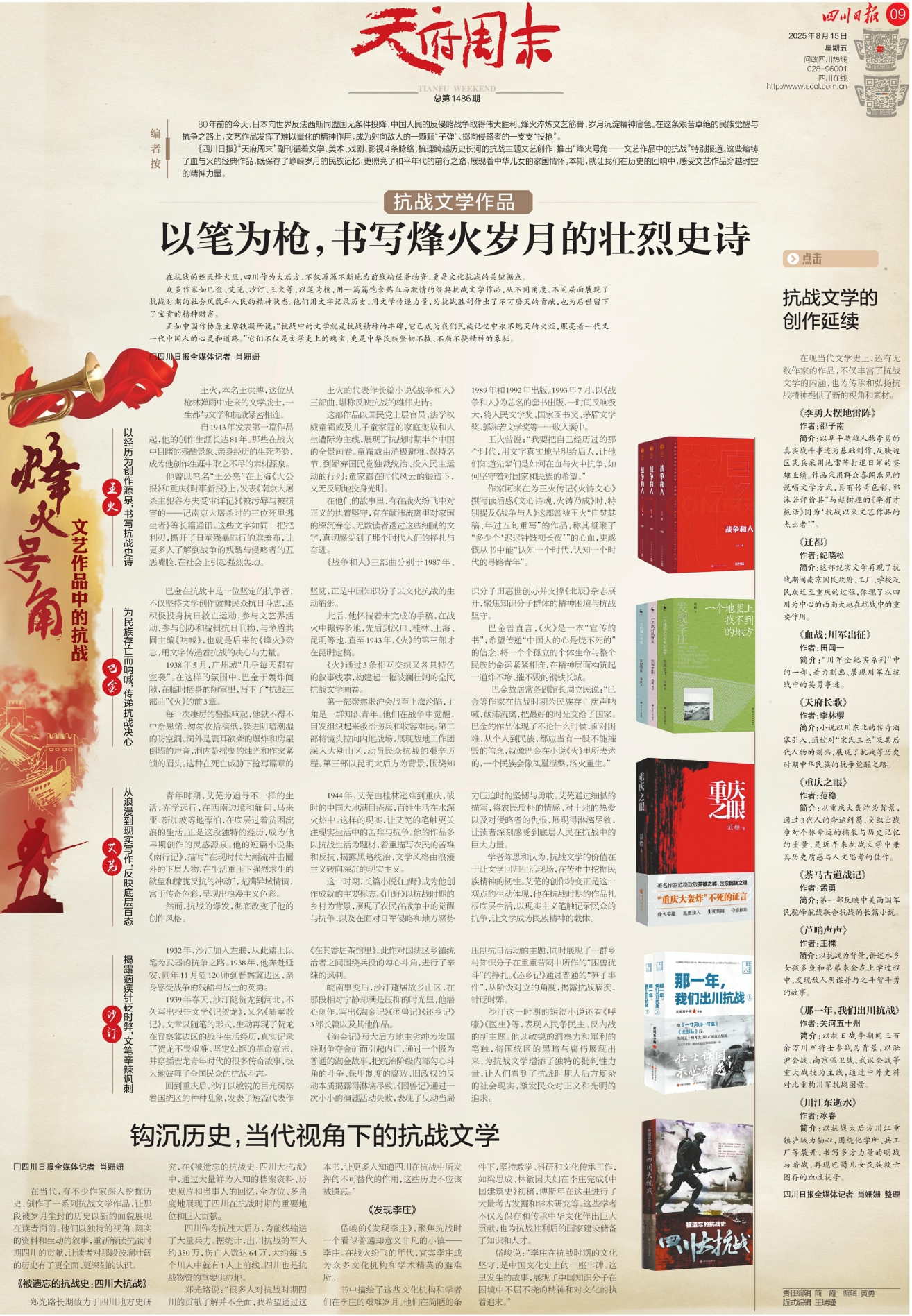 在现当代文学史上,还有无数作家的作品,不仅丰富了抗战文学的内涵,也为传承和弘扬抗战精神提供了新的视角和素材。