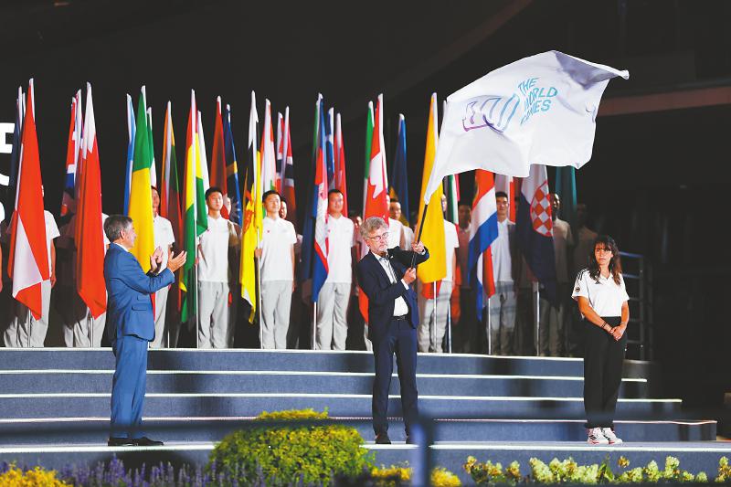 8月17日晚,2025年第12届世界运动会闭幕式上,成都与下一届世运会主办城市——德国卡尔斯鲁厄的代表,郑重地完成了会旗交接仪式。世运会在这一刻,从成都时间进入德国卡尔斯鲁厄时间。