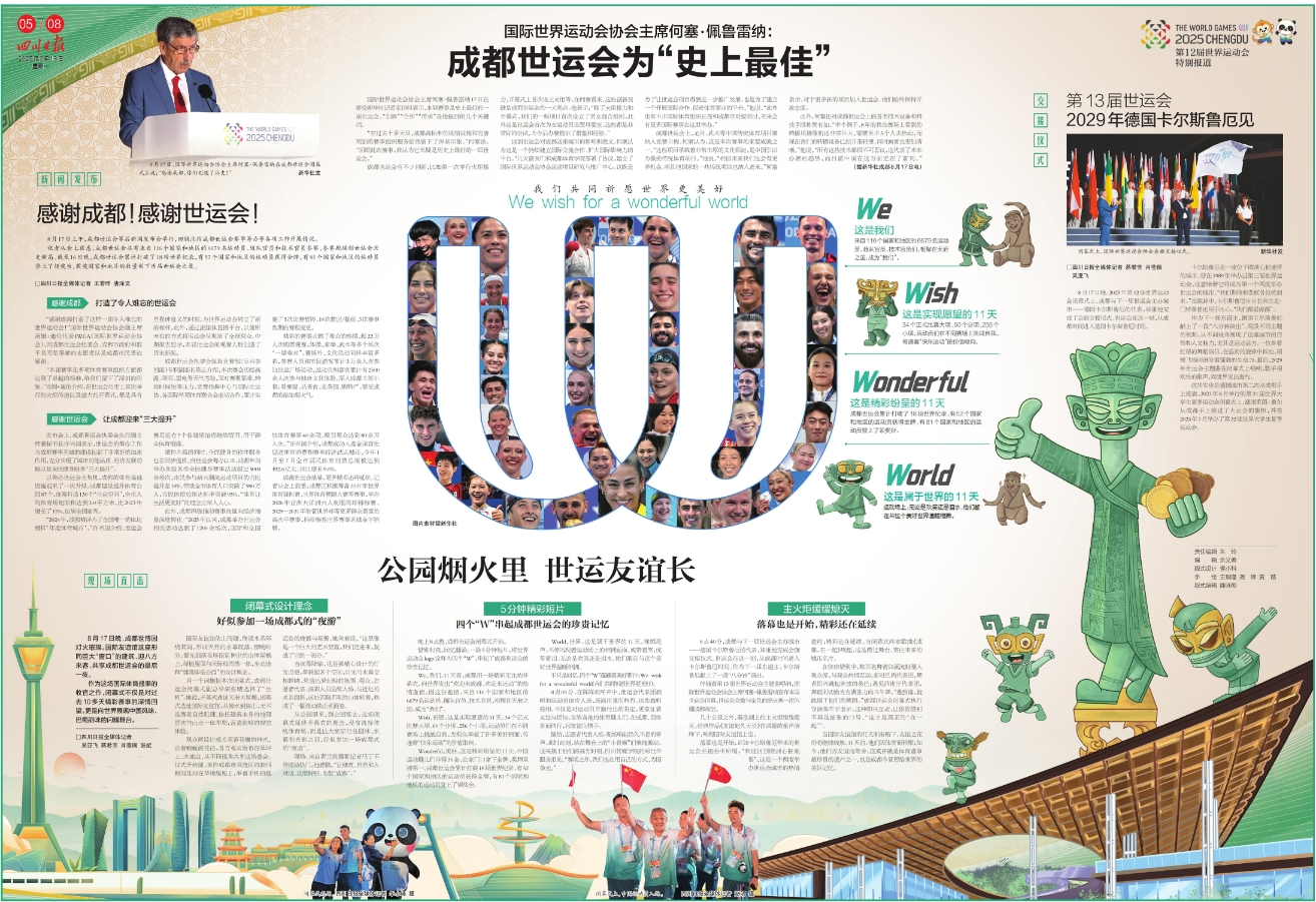 “在过去十多天里,成都高标准的场馆设施和完善周到的赛事组织服务给我留下了深刻印象。”何塞说,“回顾此次赛事,我认为它无疑是历史上最好的一届世运会。”