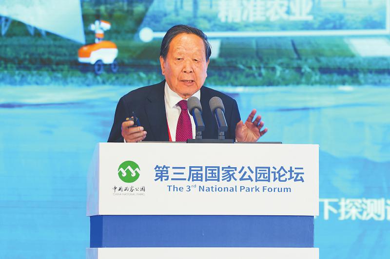 在第三届国家公园论坛主论坛上,中国科学院院士、中国工程院院士、武汉大学教授李德仁围绕“时空智能助力可持续发展目标”作主旨演讲。