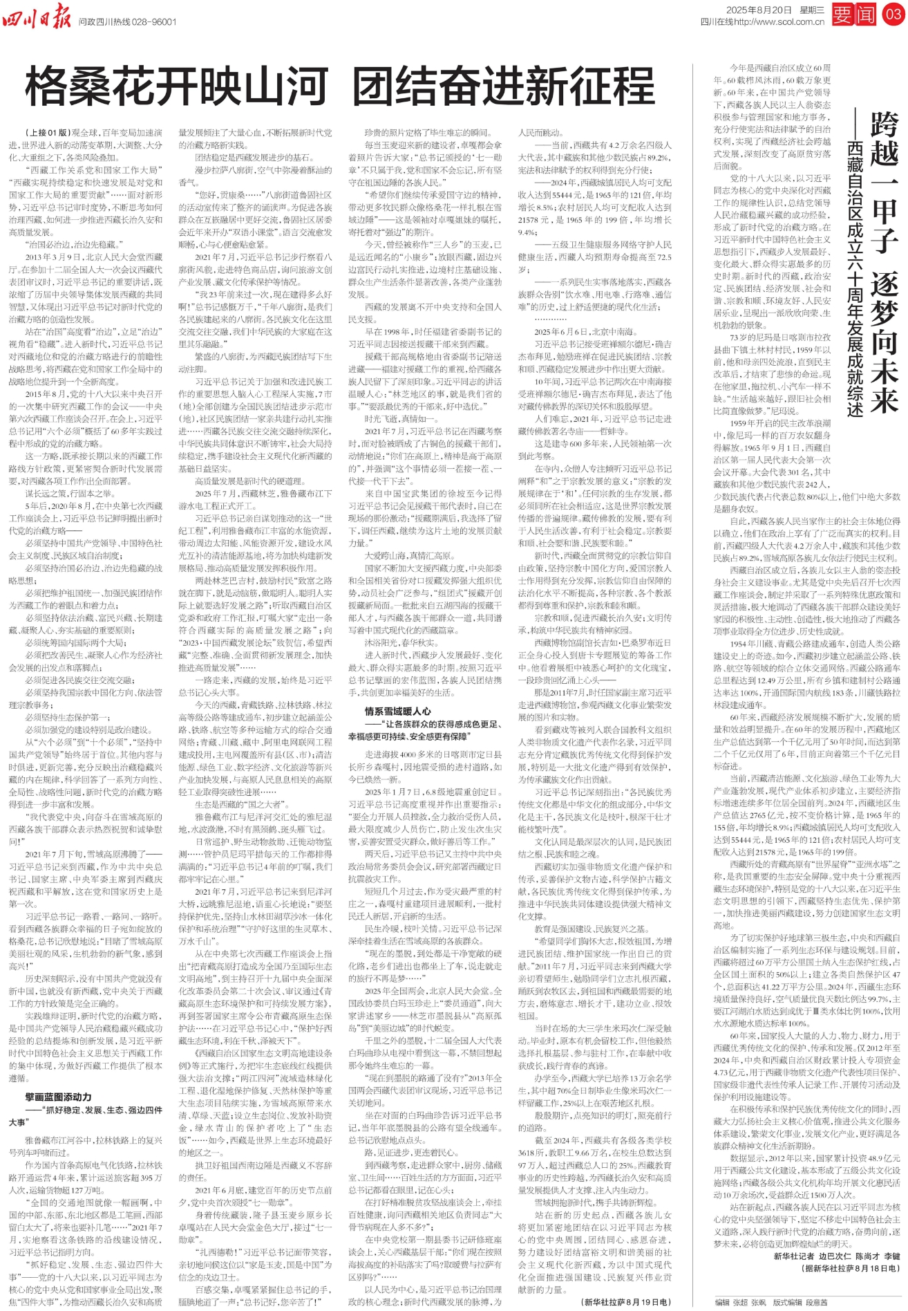 当前,西藏清洁能源、文化旅游、绿色工业等九大产业蓬勃发展,现代产业体系初步建立,主要经济指标增速连续多年位居全国前列。2024年,西藏地区生产总值达2765亿元,按不变价格计算,是1965年的155倍,年均增长8.9%;西藏城镇居民人均可支配收入达到55444元,是1965年的121倍;农村居民人均可支配收入达到21578元,是1965年的199倍。