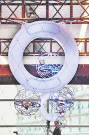 与传统足球不同,无人机足球赛的赛场在空中。参赛选手通过手柄操控银白色球体包裹的无人机,让其在特制围栏场地内完成凌空抽射、闪转腾挪、战术拦截、突破防守等高难度动作,冲向环状球门得分。