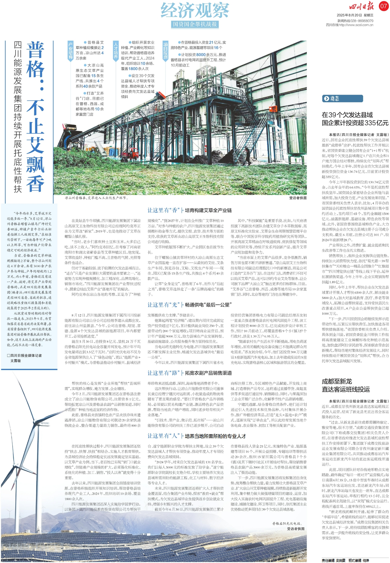 当前,普格县的艾草种植规模接近2万亩,整个凉山州则达4万余亩,共有3000余户农户参与种植,户年均增收约1.2万元。而6年前,普格还没有这一产业。彼时,将艾草产业带到普格的,正是四川能源发展集团(编者注:四川能源发展集团是经四川省委、省政府批准,通过战略性重组川投集团和省能投集团于2025年2月设立的)。