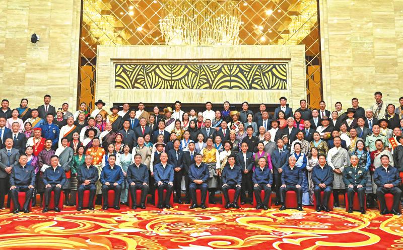 王沪宁、蔡奇、李干杰、何立峰、张国清、王小洪、洛桑江村、胡春华、帕巴拉·格列朗杰和张升民,在西藏工作过的老同志,中央和国家机关有关部门负责同志等参加有关接见。
