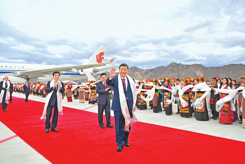 习近平率中央代表团抵达拉萨出席西藏自治区成立六十周年庆祝活动