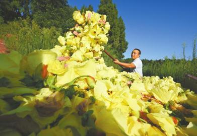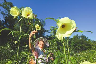 内江市东兴区永福镇在保证粮食安全的前提下,鼓励引导农民利用荒山荒坡种植既有颜值又有经济价值的黄蜀葵,销往沿海地区,带动当地农民增收致富。 李建明 摄(C视觉)