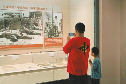 展览开幕,参观者络绎不绝。成都市民张宇专程带8岁的儿子张一郎前来观展。张宇说:“在抗战胜利80周年之际,我想让孩子深刻了解中华民族怎样从苦难的深渊一步步走向今天的富强。铭记历史,勿忘国耻,希望孩子在了解这段历史后自强自立,更加热爱我们的国家和民族。”