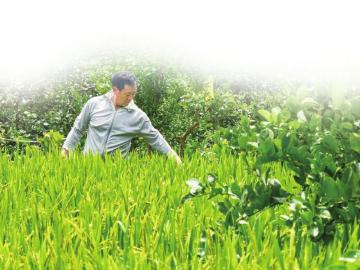 陶学刚在管护自家后院的节水抗旱稻。