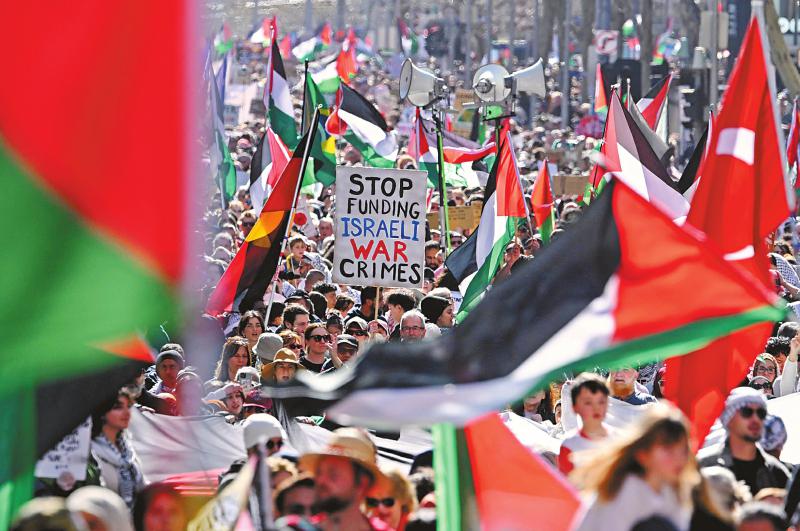 澳大利亚首都堪培拉以及悉尼、珀斯等多地24日爆发支持巴勒斯坦的大规模游行,呼吁结束加沙地带军事冲突。示威者手持巴勒斯坦旗帜和写有“为巴勒斯坦游行”“制裁以色列”“孩子们应得到食物,而不是炸弹”等字样的标语牌,谴责在加沙地带发生的针对平民的袭击,强调巴勒斯坦人民有权在自己的土地上生存和生活。下图为8月24日,人们在澳大利亚墨尔本参加游行集会。