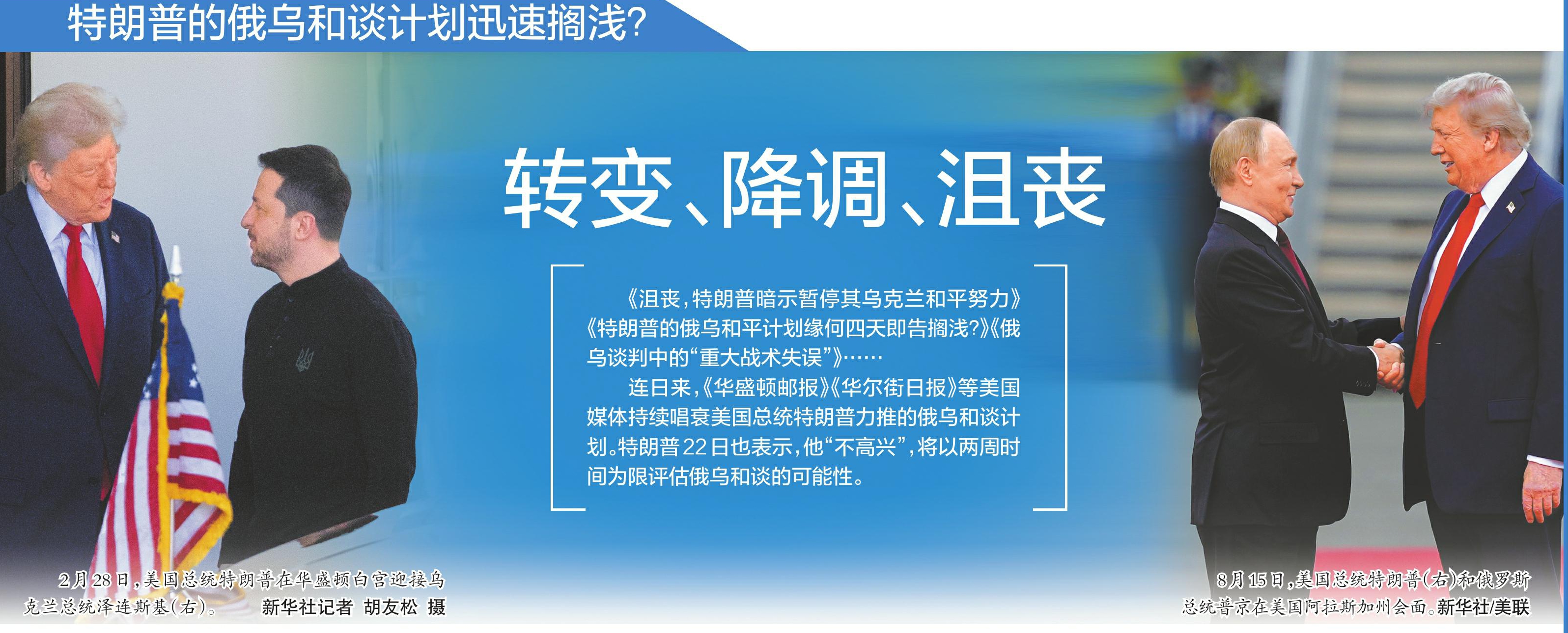美联社报道写道,距离18日的会晤过去仅4天,特朗普的乐观情绪降了调。英国《卫报》报道称,特朗普的表态显然表明,他对潜在的和平协议进展缓慢感到沮丧。