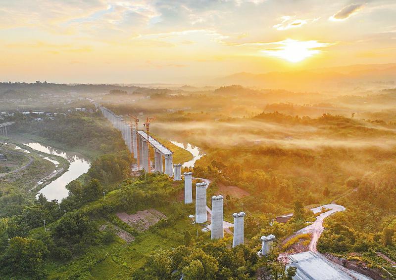 8月19日,在西渝高铁四川省广安段华蓥市清溪口特大桥施工现场,桥墩和连续梁已顺利完成拟架设箱梁。西渝高铁横跨重庆、四川、陕西三地,是全国高速铁路网“八纵八横”京昆通道的重要组成部分。 邱海鹰 摄(C视觉)