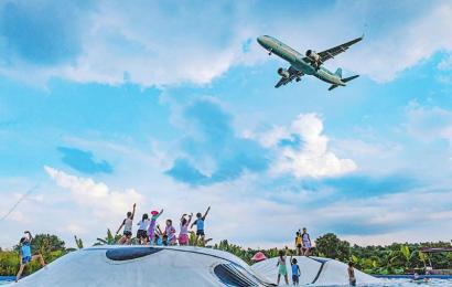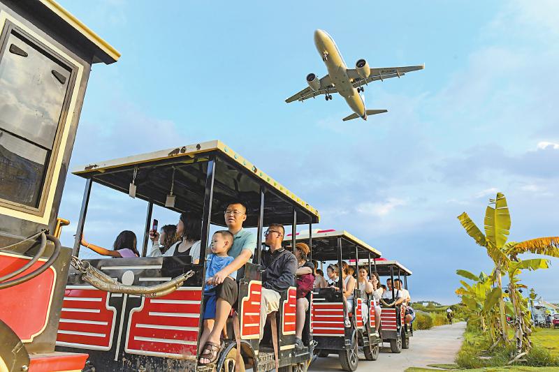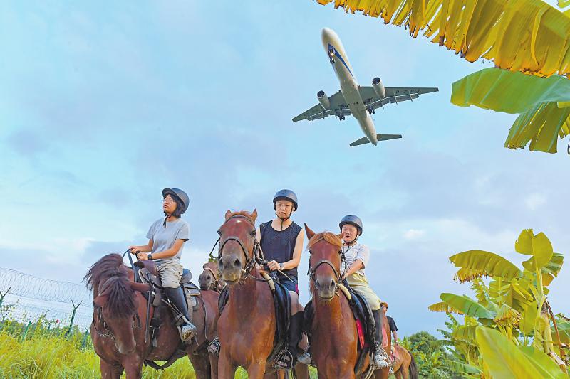 当下,在成都市双流区梦幻植物迷宫主题公园,无论是在水上乐园畅玩,还是在马背上、小火车中休闲,游客都可捕捉与飞机同框的精彩瞬间,这一充满成都航空特色的体验,正逐渐成为休闲消费的新热点。 四川日报全媒体记者 李向雨 摄