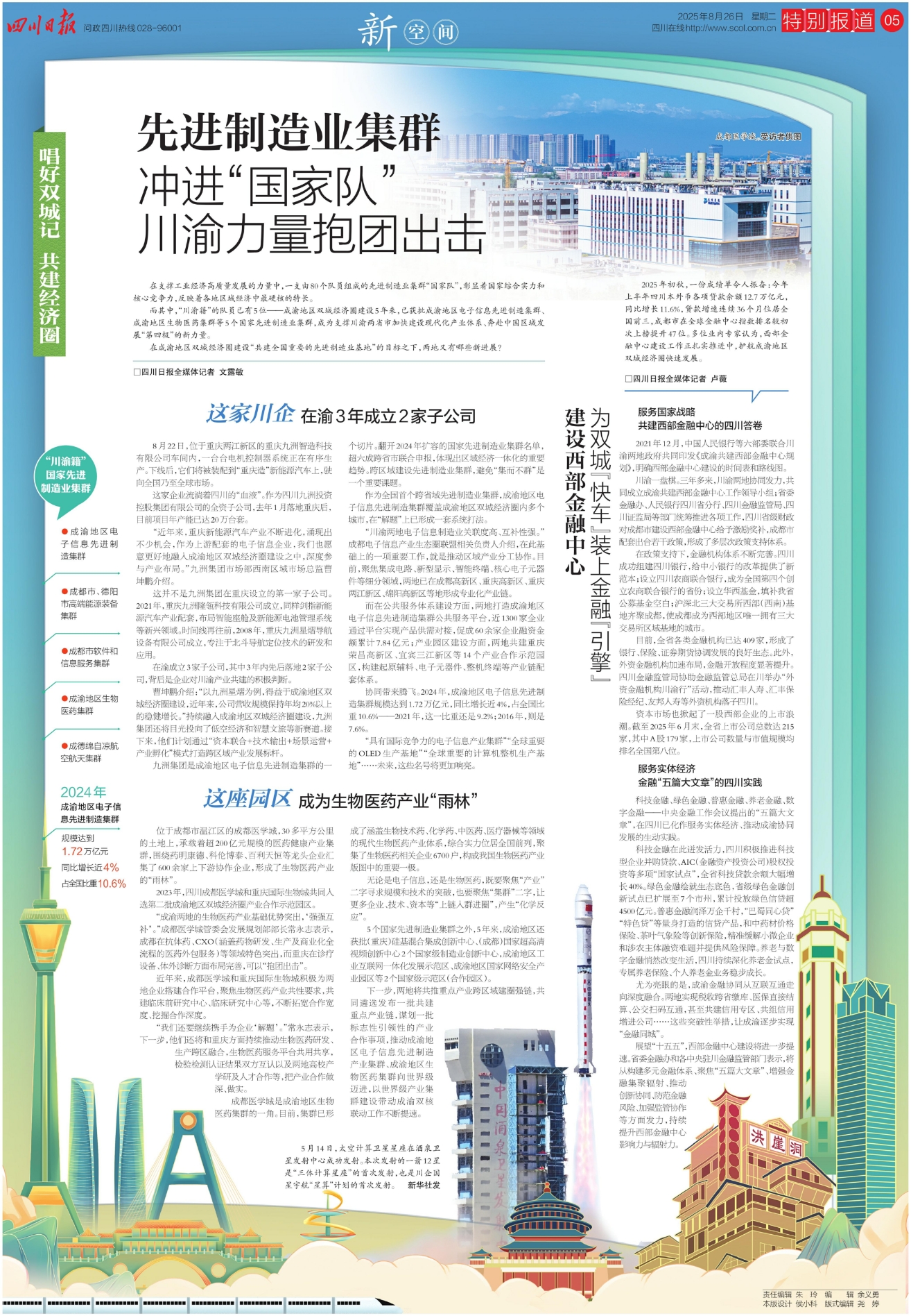 而其中,“川渝籍”的队员已有5位——成渝地区双城经济圈建设5年来,已获批成渝地区电子信息先进制造集群、成渝地区生物医药集群等5个国家先进制造业集群,成为支撑川渝两省市加快建设现代化产业体系、奔赴中国区域发展“第四极”的新力量。