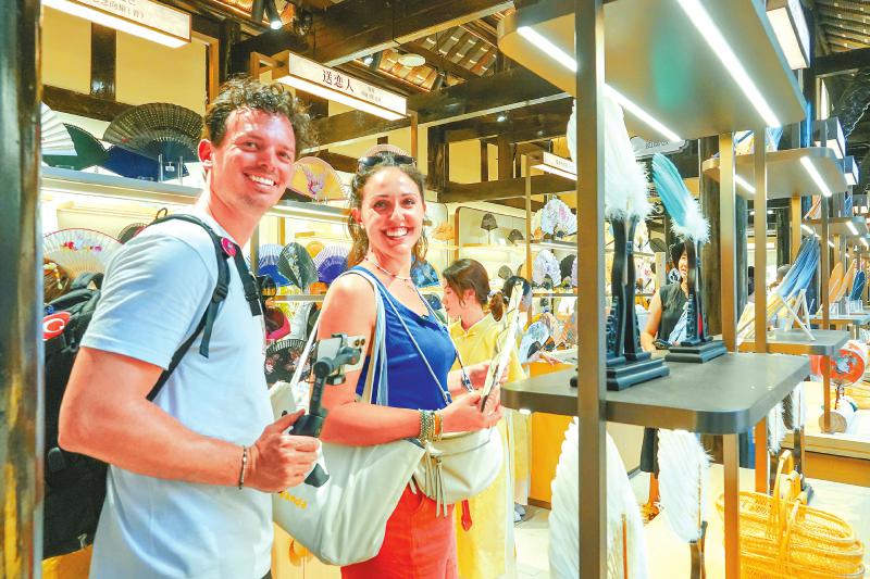 在成都宽窄巷子一家文创饰品商店,两位外国宾客正在参观购物。 邓显杰摄(C视觉)