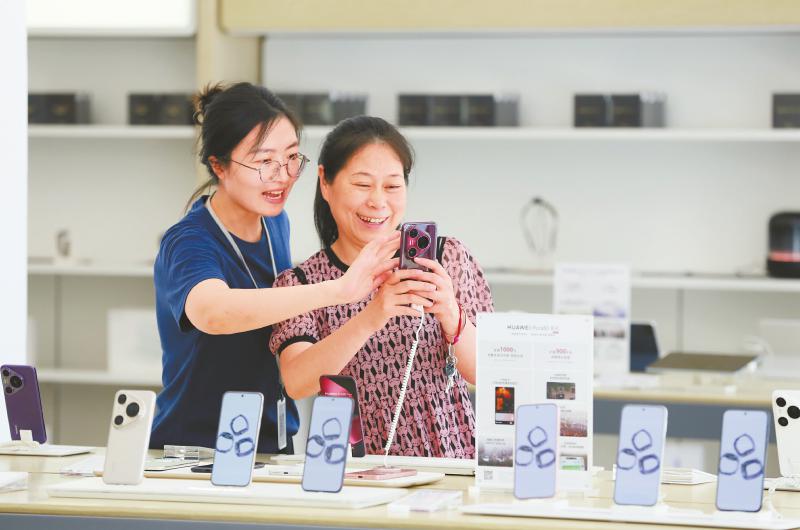 在“国补”优惠期间,顾客在乐山市一家大型购物商场内挑选新款手机。 李华时 摄(C视觉)