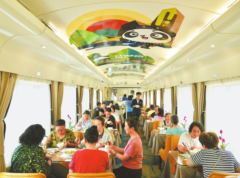 近年来,旅游列车逐步兴起,受到银发旅客青睐。7月底,四川正式出台《做优银发旅游列车 促进服务消费发展行动方案》,加快提高“熊猫旅游列车”的服务能力、优化消费场景。省商务厅相关负责人介绍,目前“熊猫专列”品牌有“成都号”“安逸号”“什邡号”等3列,“锦绣山河”品牌有“岷江号”,未来三年还将新增10列“锦绣山河”列车。“当前四川正依托丰富的‘农商文旅体康’综合资源,结合省内五大经济区的季节、文化等差异,将巴蜀文化搬上旅游列车,培育新的经济增长点。”