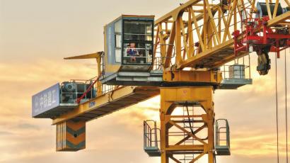 杨廷光的工作地点是离地54米高的塔吊驾驶舱。他要在安全护具的保护下垂直攀爬十多分钟,才能抵达不足2平方米的“云端小屋”,等到下班才会重回地面。留在地面的郭敏则通过手中的对讲机,为高空中的丈夫指引物料吊装作业。