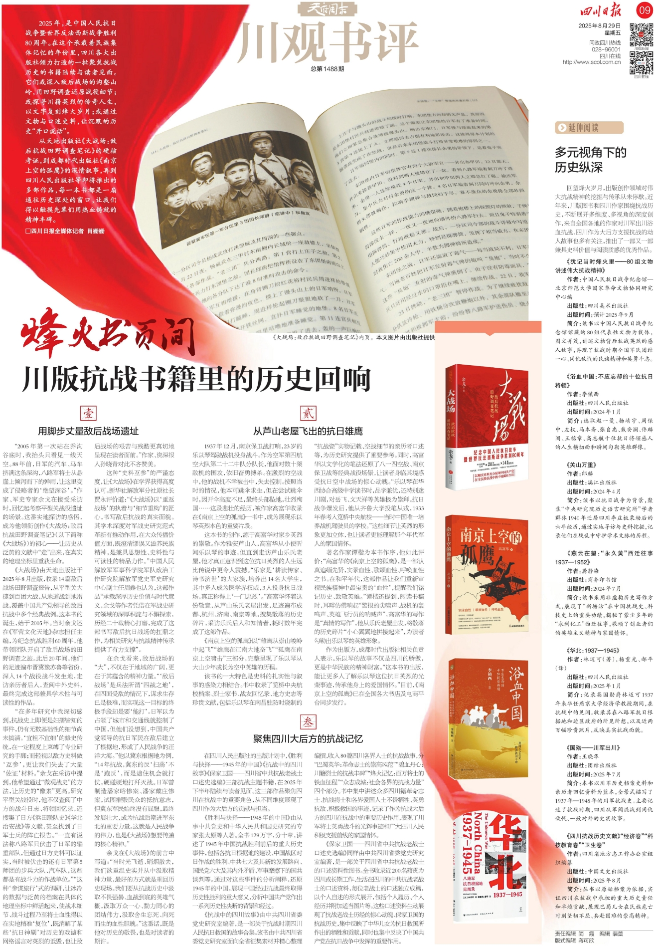 回望烽火岁月,出版创作领域对伟大抗战精神的挖掘与传承从未停歇。近年来,川版图书和四川作家围绕抗战历史,不断展开多维度、多视角的深度创作,来自全国各地的作家对川军出川浴血抗战、四川作为大后方支援抗战的动人故事也多有关注,推出了一部又一部兼具史料价值与阅读质感的优秀作品。