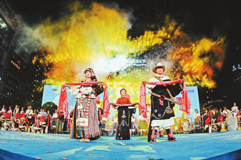 近日,2025康定情歌国际音乐节在甘孜州康定市启幕。活动以“木雅婚俗”为核心载体,通过99对新人身着传统木雅藏装巡游以及“情歌擂台赛”直播间、经典荧幕情侣COSPLAY、全城快闪等形式,让市民与游客沉浸式体验“情歌故乡”的独特魅力。