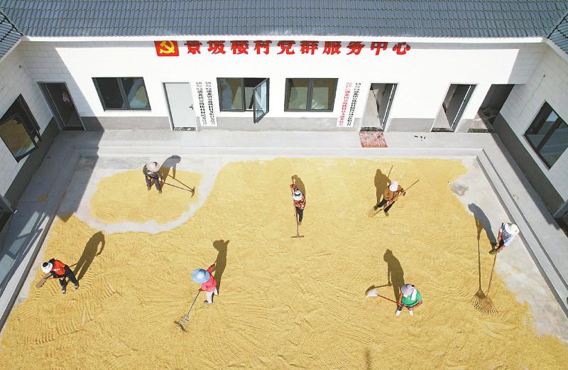在广安市广安区花桥镇粮食烘干中心,烘干后的稻谷通过传送带源源不断装入货车,即将运往国家粮库。近年来,广安区在“天府粮仓”建设中布局28处烘干中心,日烘干能力近3000吨,为农业增效、农民增收提供坚实保障。而在内江市东兴区郭北镇景坡楼村,村委会大院成了临时晒谷坪,农民趁着晴好天气翻晒新谷。为解决“晒粮难”,东兴区临时开放各镇文化广场、村委会大院等公共区域,确保粮食颗粒归仓。