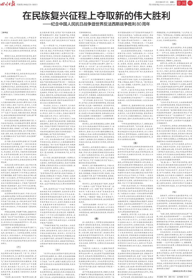 硝烟虽已远去,胜利的号角仍在回响,奋斗的征程未有穷期。民族复兴的伟大梦想,召唤着我们从历史中汲取前行的智慧和力量,在新征程上弘扬伟大抗战精神,不断从胜利走向新的胜利!
