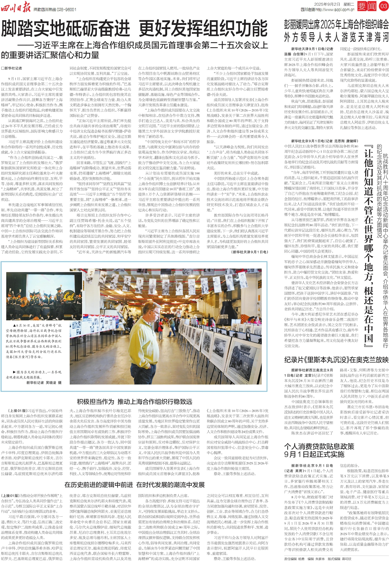 成员国领导人签署并发表《上海合作组织成员国元首理事会天津宣言》,批准《上合组织未来10年(2026-2035年)发展战略》,发表关于第二次世界大战胜利和联合国成立80周年的声明、关于支持多边贸易体制的声明,通过加强安全、经济、人文合作和组织建设等24份成果文件……此次峰会的一系列重要成果令人振奋。